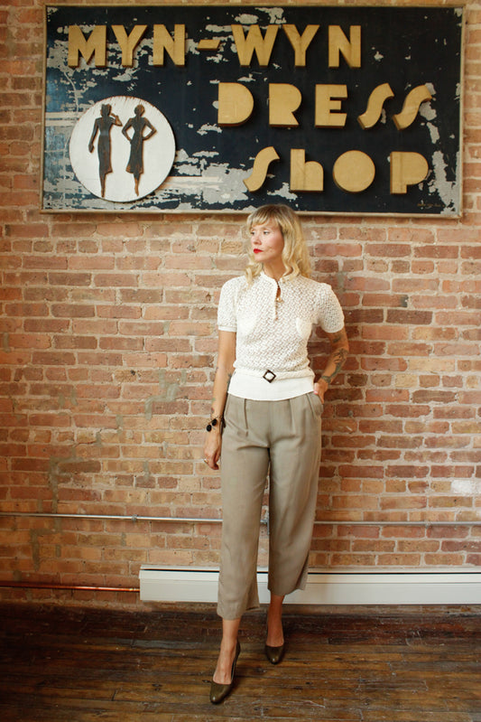 1930s Grey Wool Crepe Pants - 26 waist