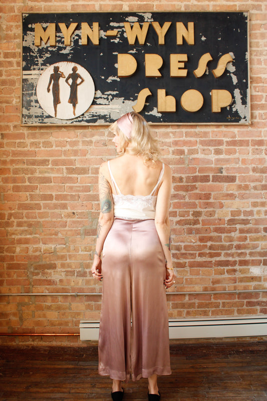 1940s Satin Rayon Lavender Wide Leg Pant (As is) with Matching Head Scarf - S/M
