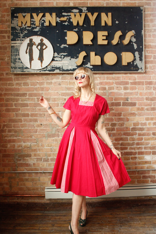 1950s Magenta Pink Peekaboo Gingham Dress - Small