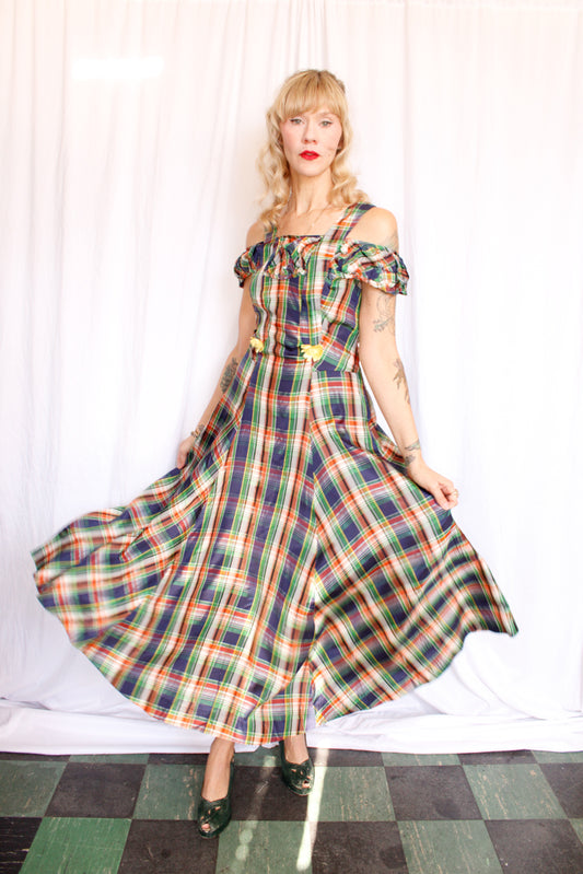 1940s Plaid Silk Taffeta Gown - Small