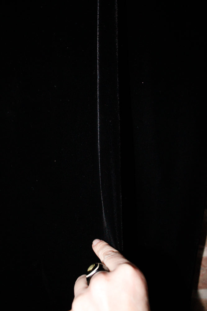 Condition: Good with a few wears on the pile and sheen on velvet from cleaning. No holes and no stains. Cleaned and ready to wear.