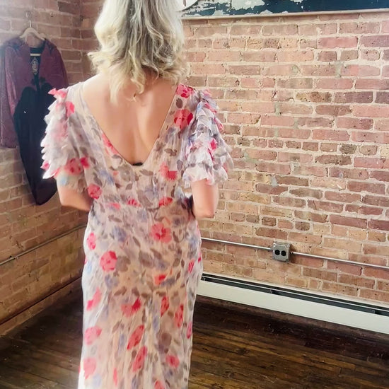 ~1930s Stunning Silk Chiffon Floral Bias cut dress with vest bolero