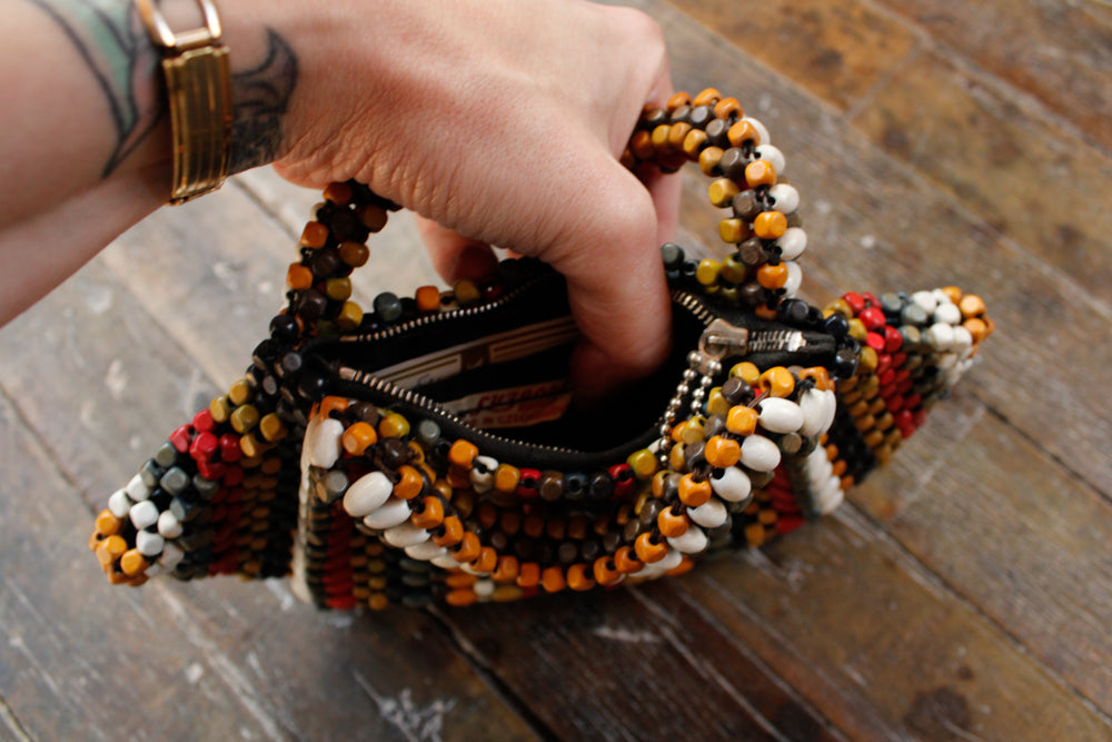 1930s Wood Bead Czech Small Purse
