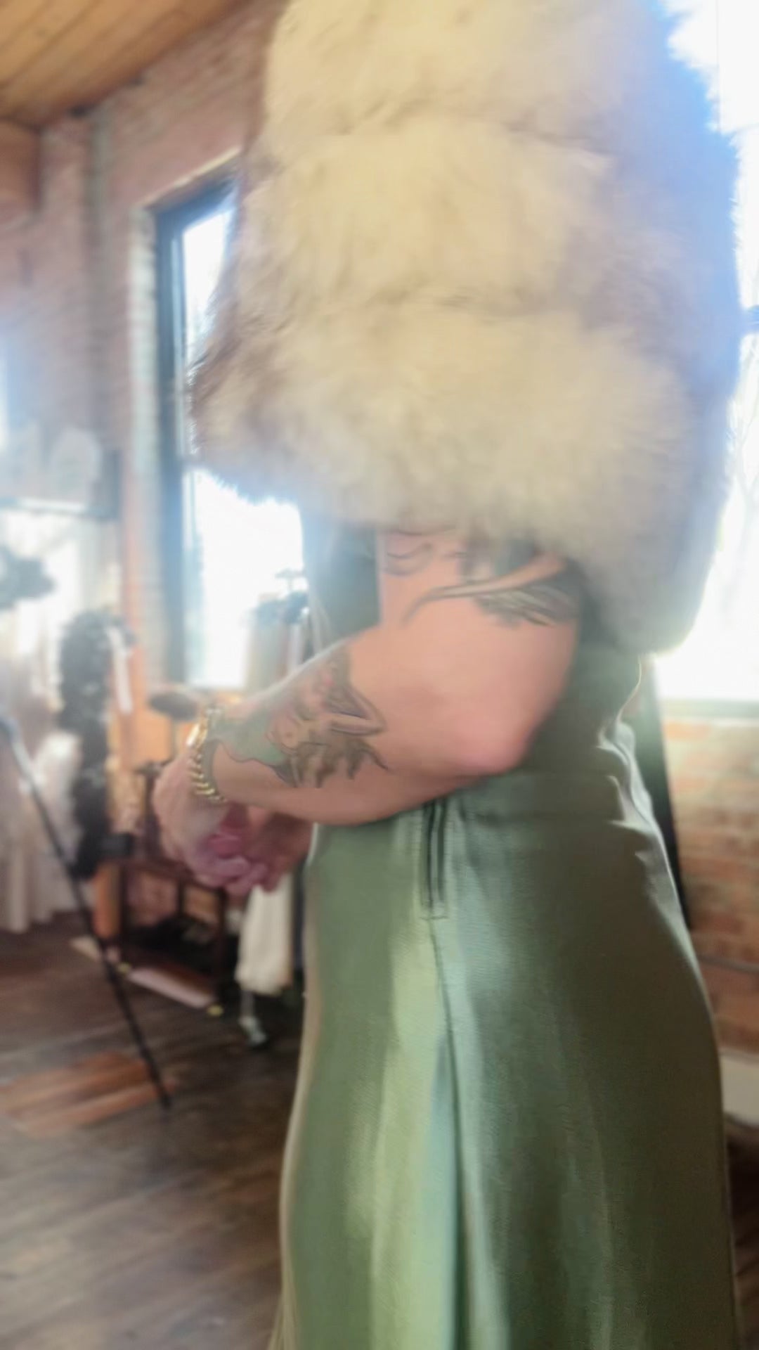 ~Stunning 1940s Silk Satin Dress Green in full body photos is the accurate color. the close up photos are a bit too yellow because of the sunlight.