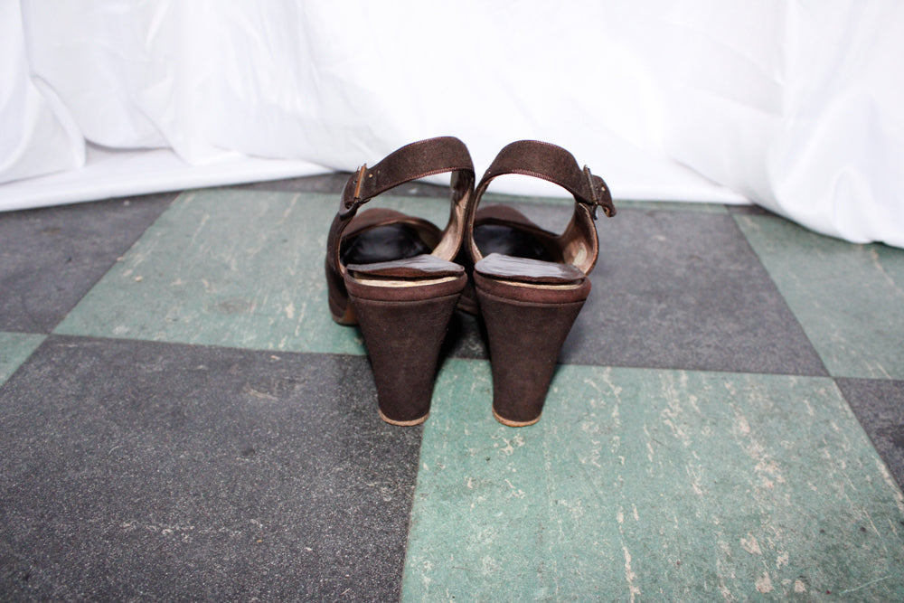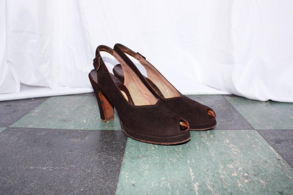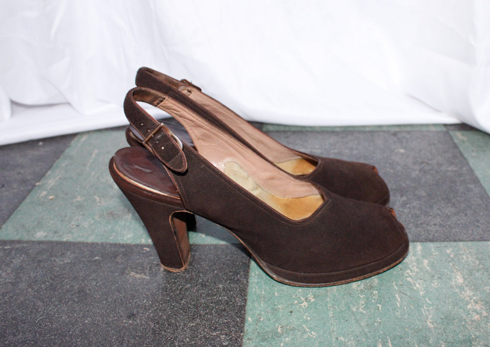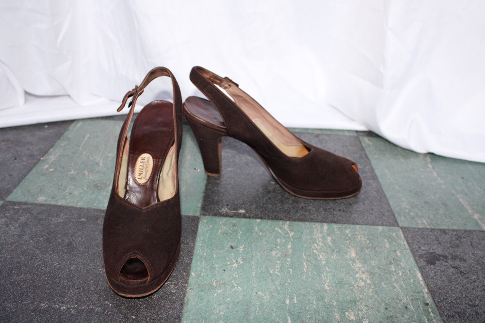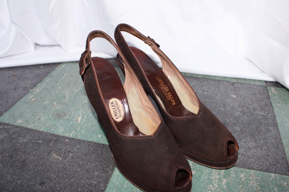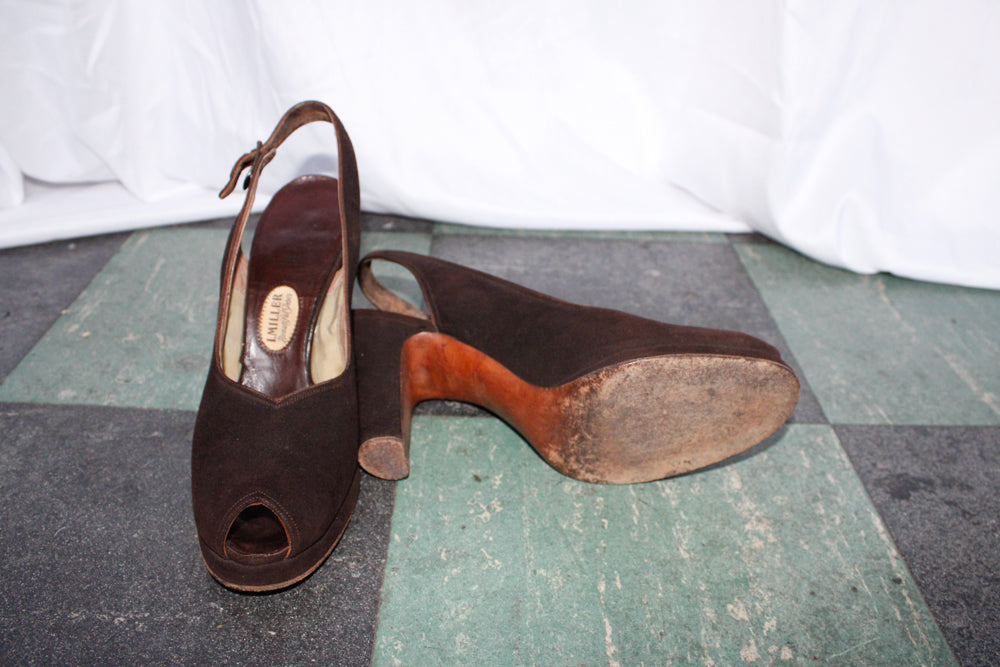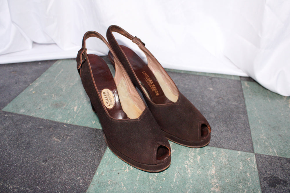 1940s I. Miller Brown Brushed Leather Slingback Heels - 7.5N