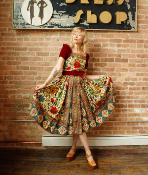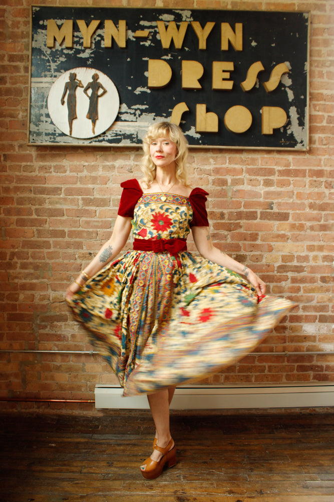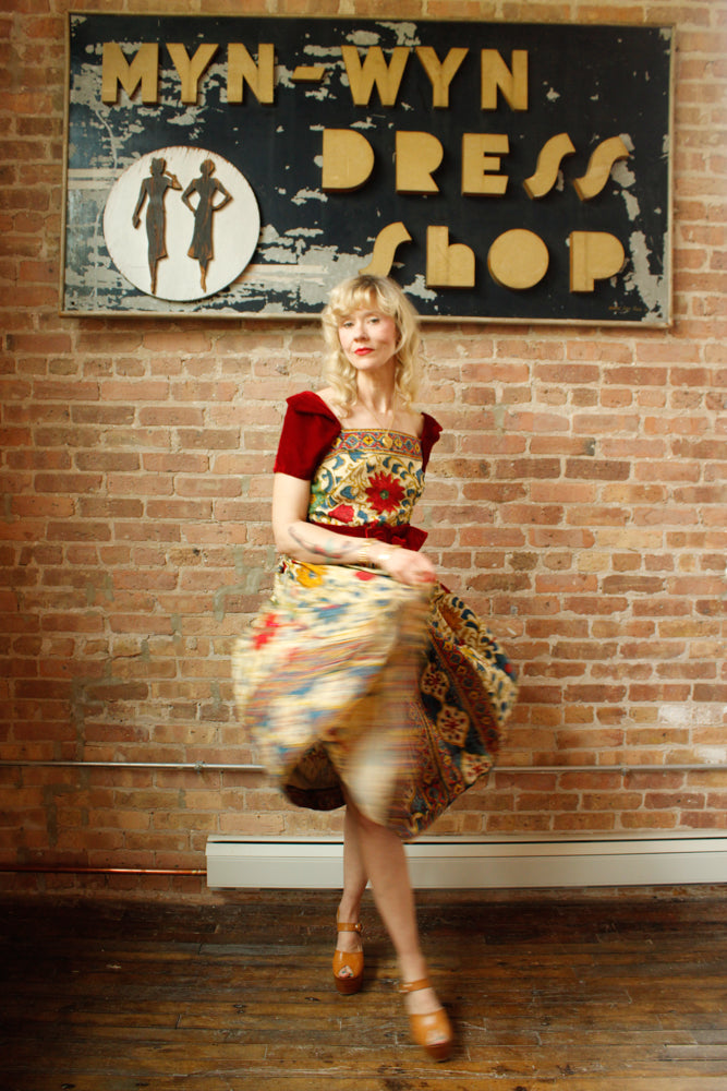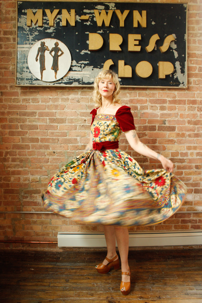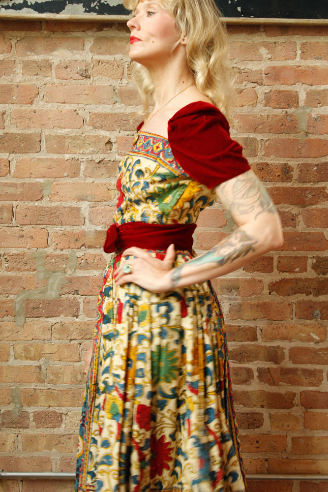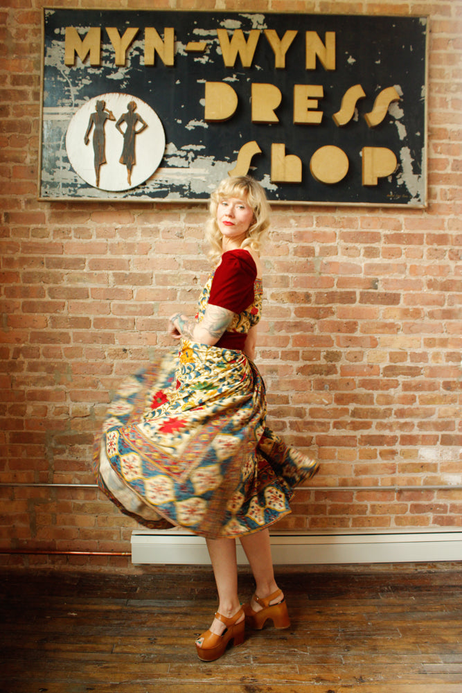 1940s Margie Webb Batik & Velvet 2pc Skirt Set - Medium