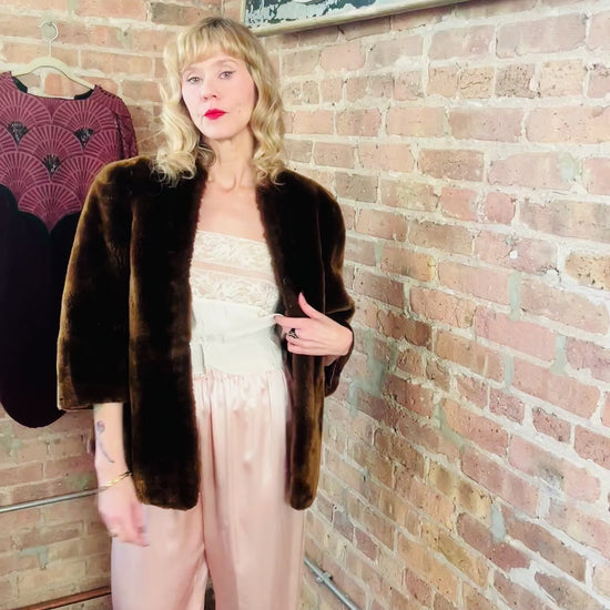 1940s Mouton Fur Cropped Coat - Small to Medium