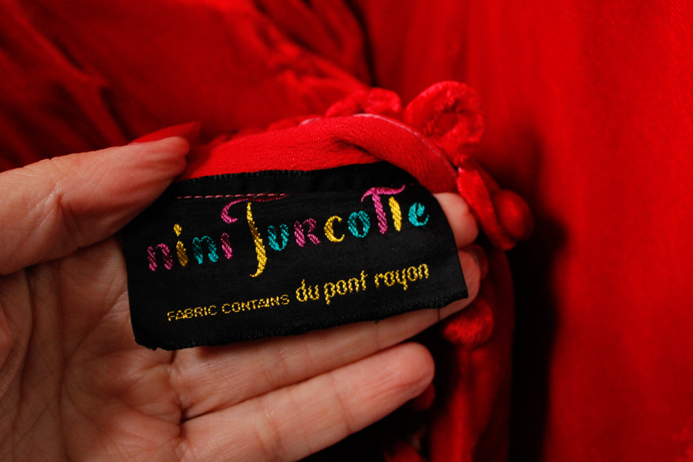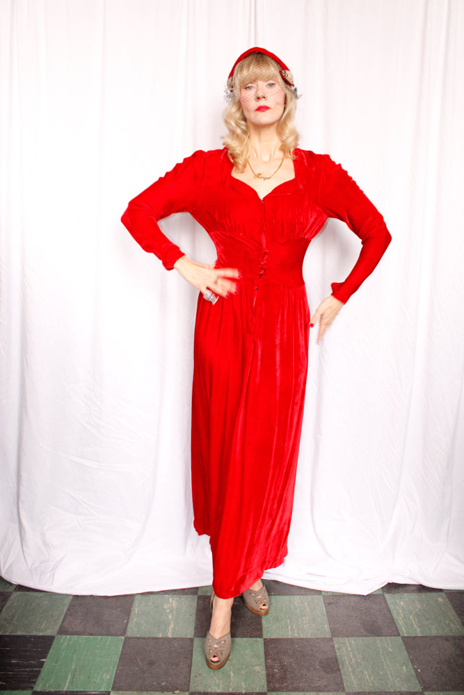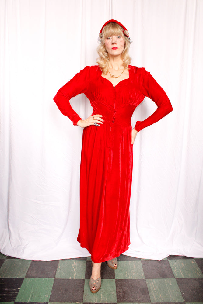 1940s Nini Turcotle Rayon Red Velvet Gown - S/M