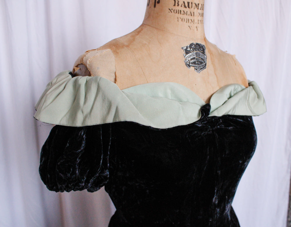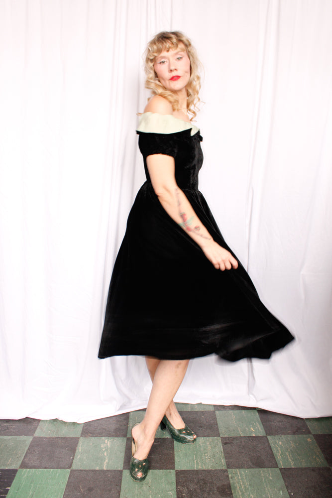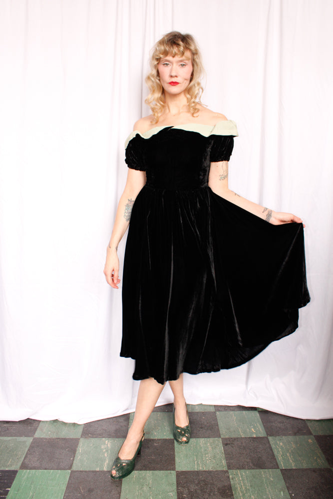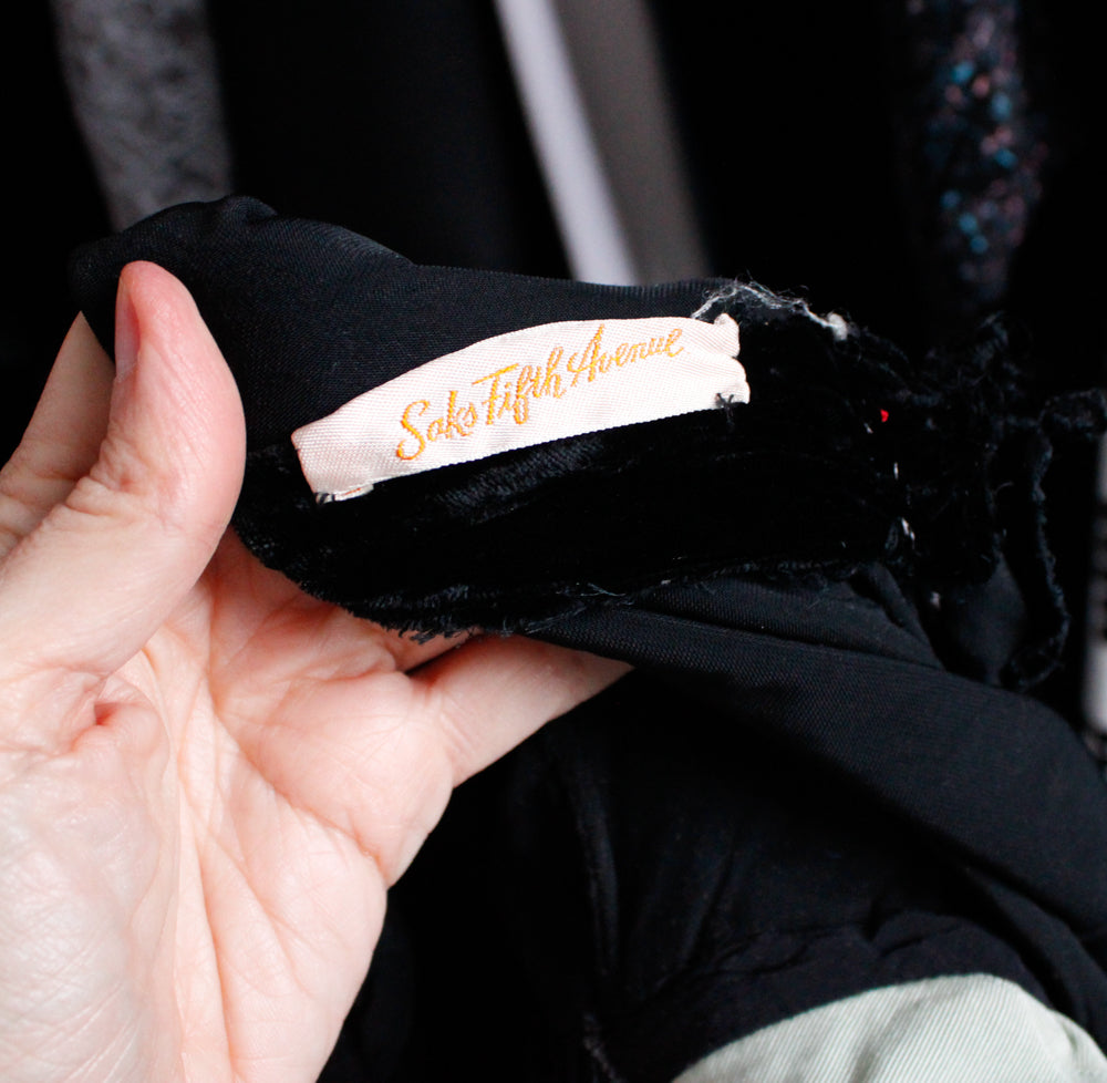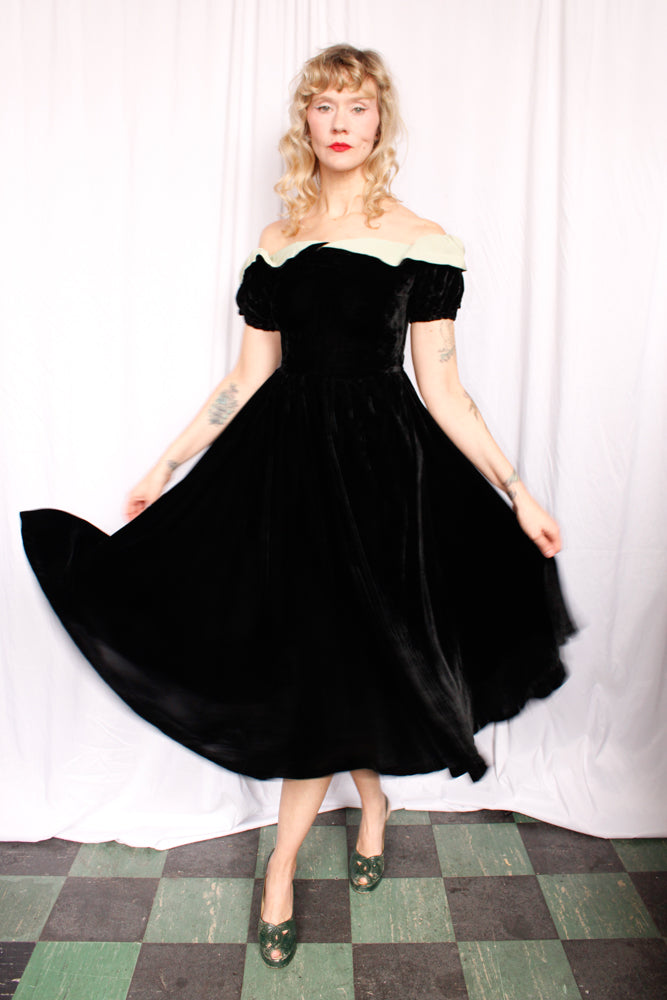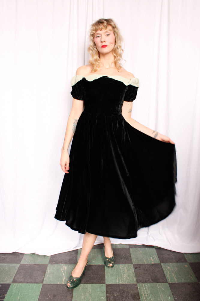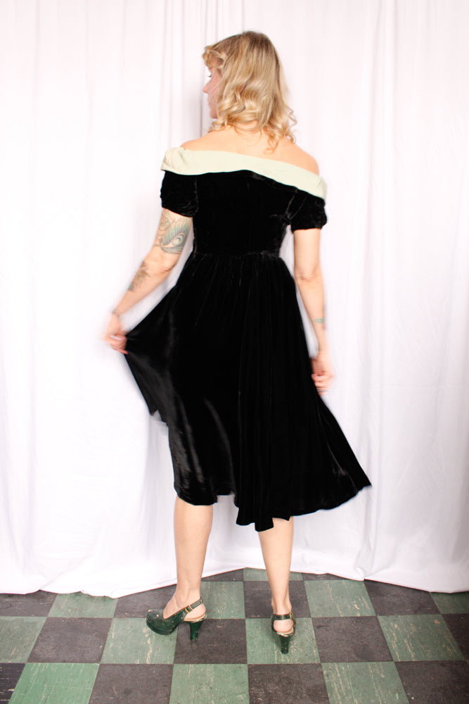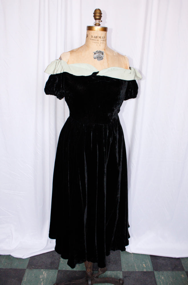 1940s Saks Fifth Ave Black Velvet Dress - Small