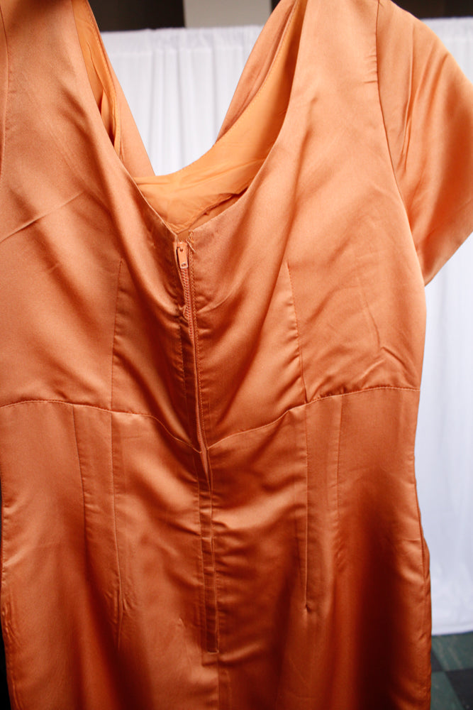 1950s Orange Silk Cocktail Dress - Medium