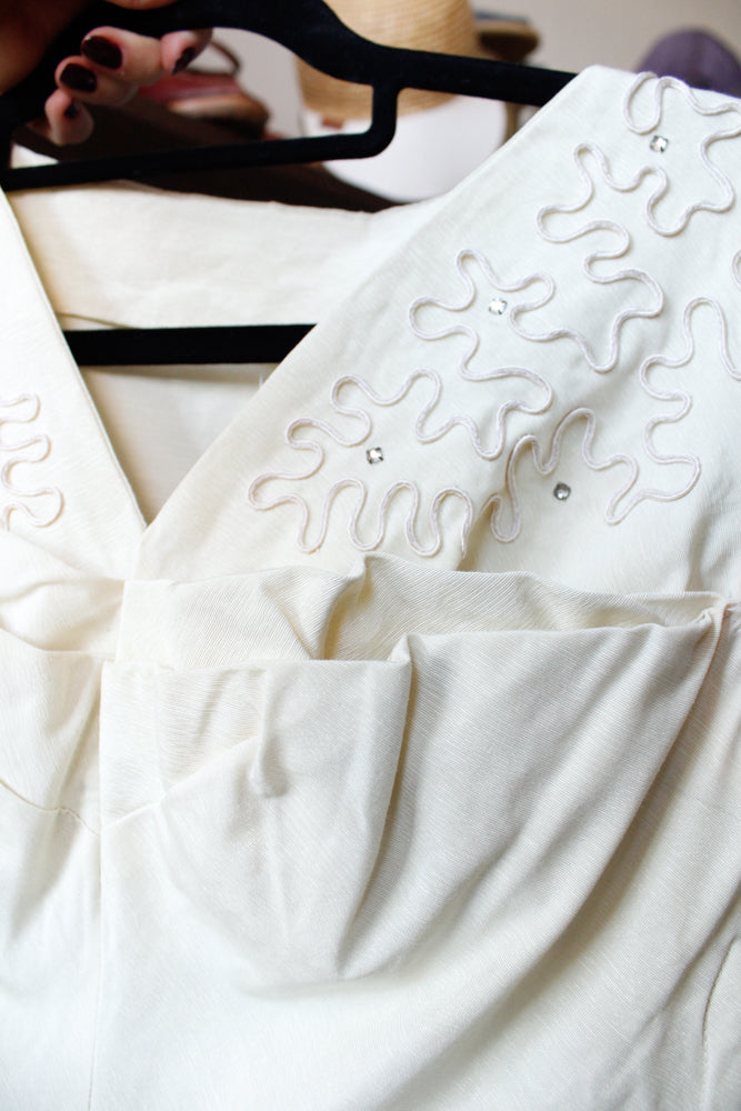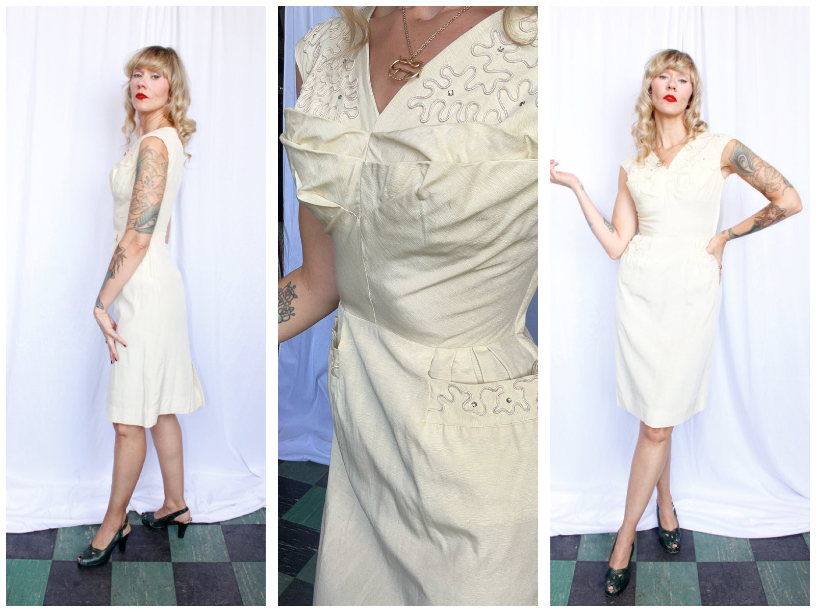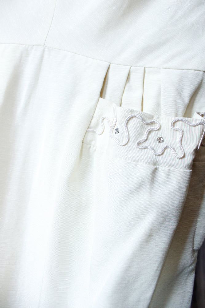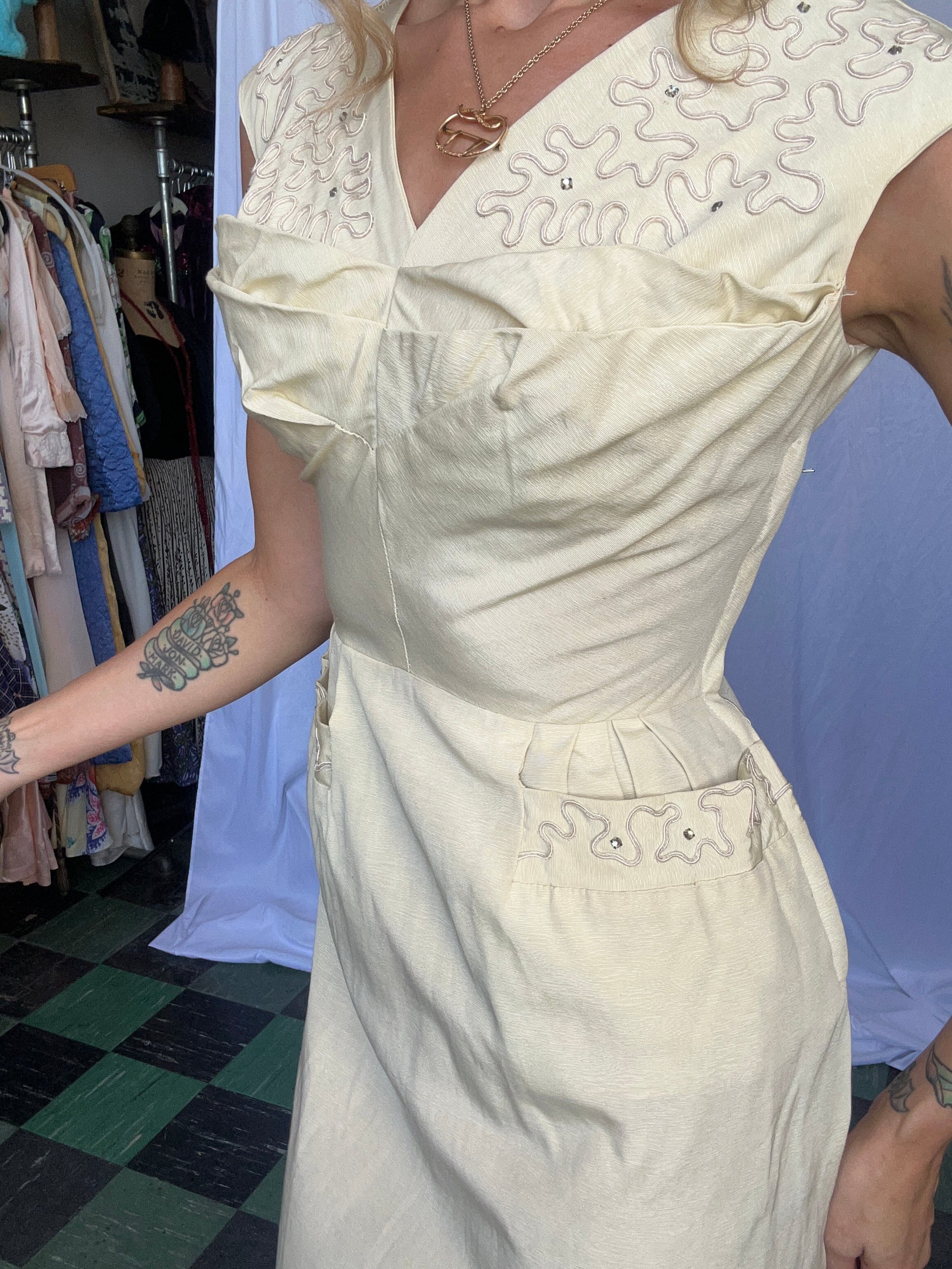 1950s Petite Ivory Silk Cocktail Dress - Small