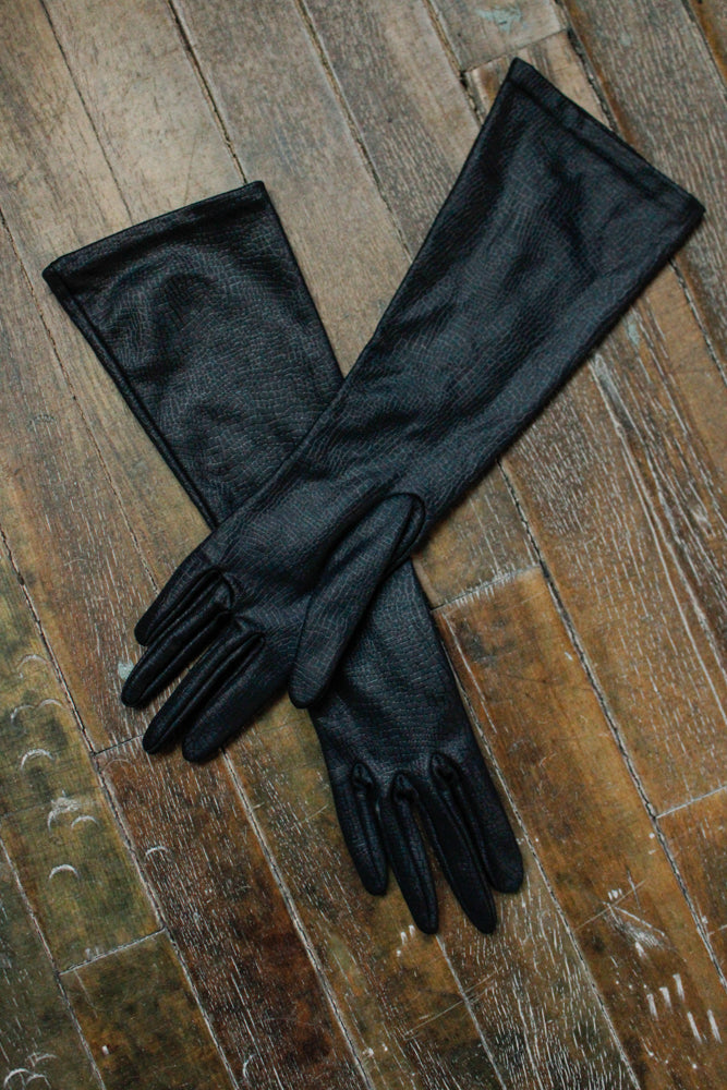 1960s Nylon Faux Snakeskin Pattern Evening Gloves