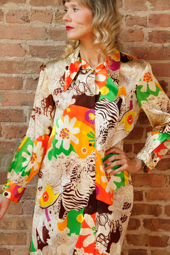 1960s Saks Fifth Ave Animal Print Tunic Dress - M/L