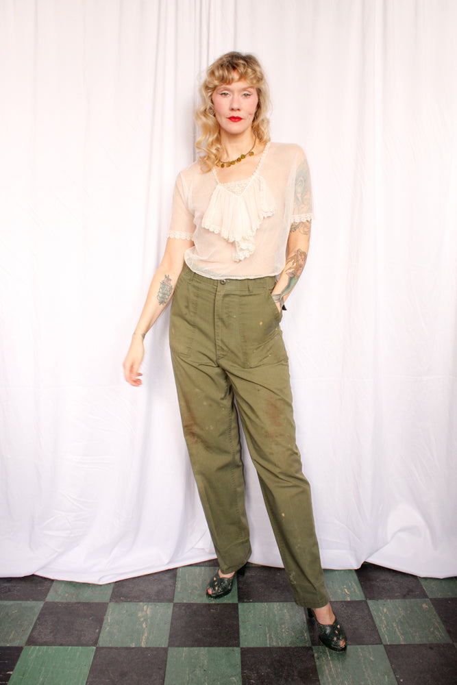 Condition: Paint splatters and oil spots, wear worn, no holes. Cleaned and ready to wear.