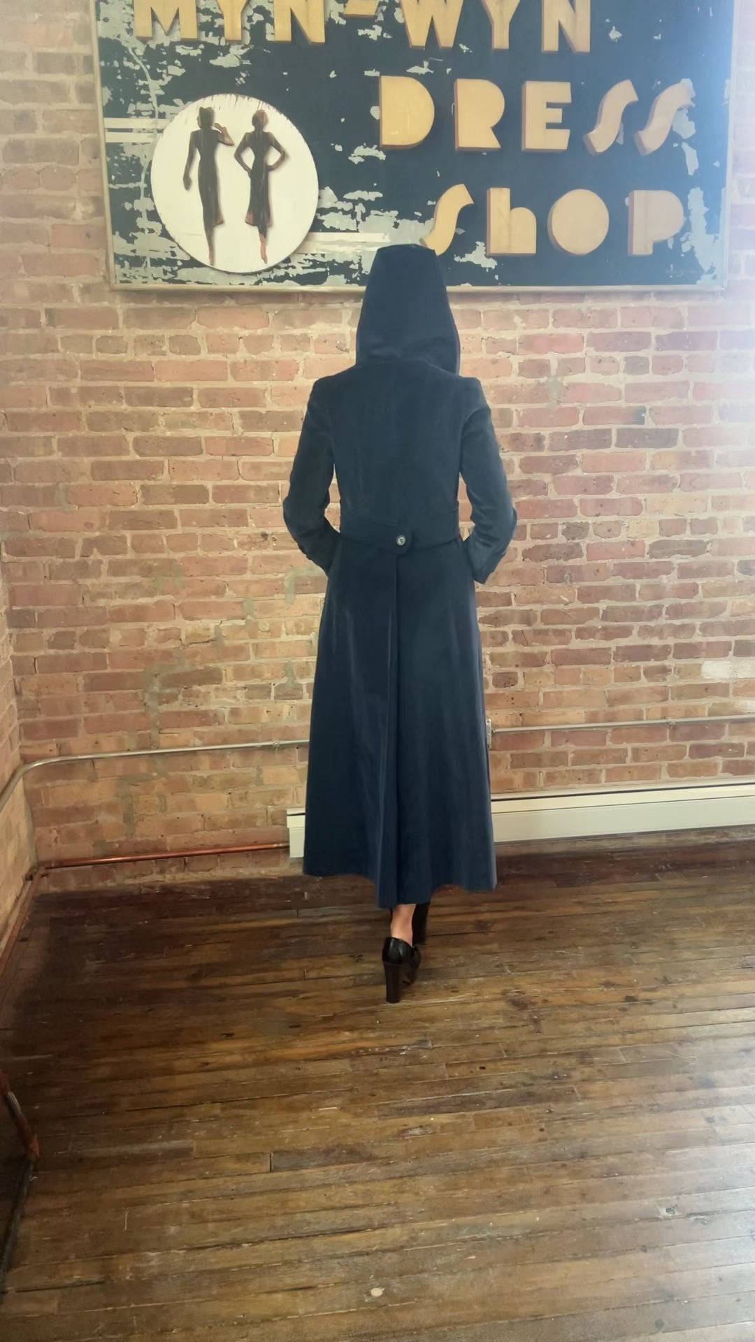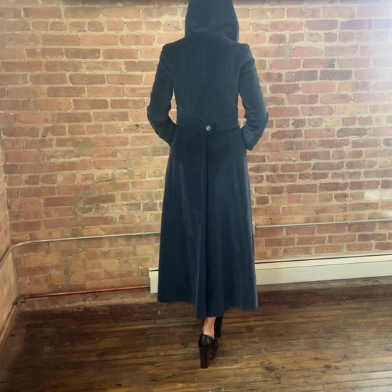 1970s Blue Hooded Cotton Velvet Coat - Medium