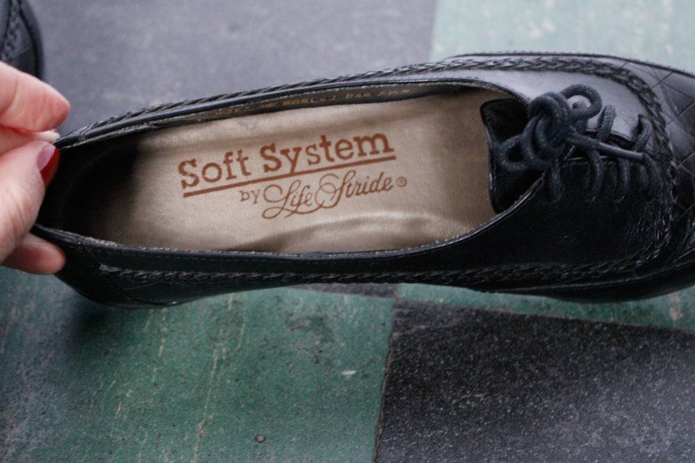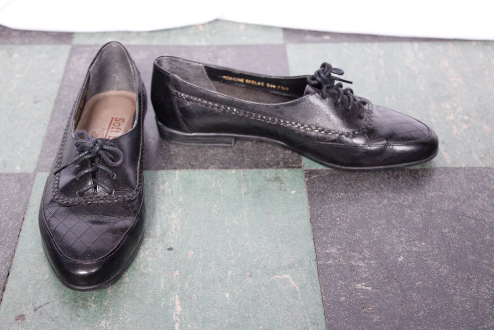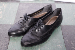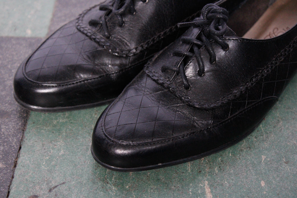 1980s Black Leather Lace up Oxfords - 7.5/8M