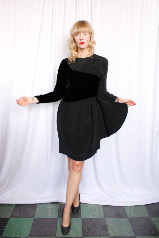 1990s Carolina Herrera Silk & Velvet Dress - Medium