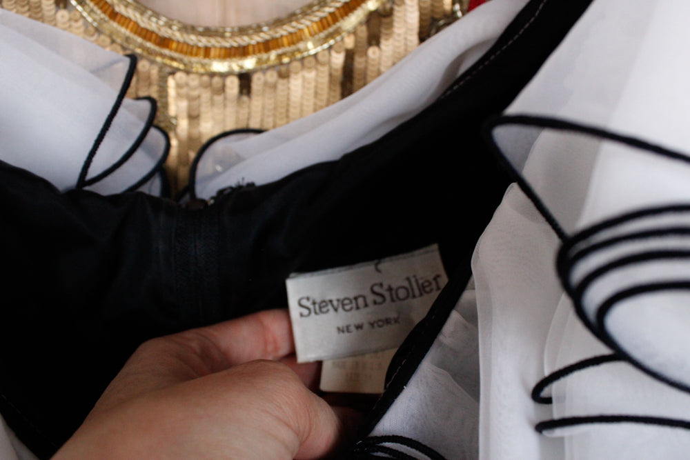 1990s Ruffle Collar Black Cocktail Dress - M/L