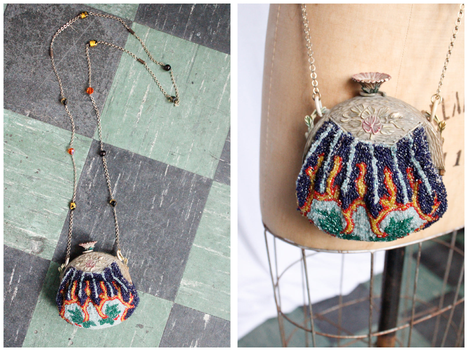 Material: Beads, celluloid, silk, chain