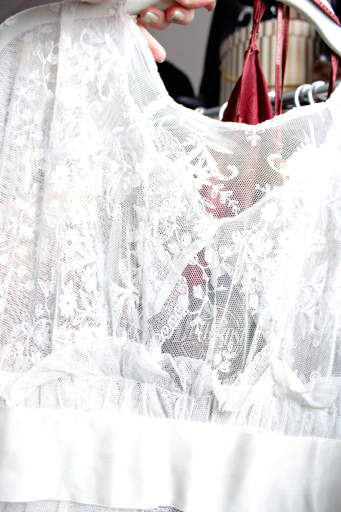Edwardian Lace Tulle Tiered Sheer Wedding Dress - Small